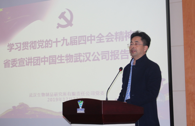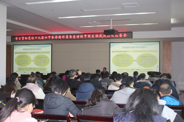 12月13日,中國生物武漢公司舉辦學習貫徹黨的十九屆四中全會精神湖北省委宣講團報告會,湖北省委宣講團成員、華中農(nóng)業(yè)大學馬克思主義學院院長梁偉軍同志作宣講報告,武漢公司領(lǐng)導班子成員、黨委委員、中層管理人員、黨支部書記及黨員代表共160余人參加宣講報告會。