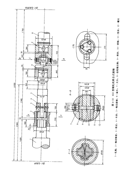 圖4-18所示為650型鋼軋機(jī)聯(lián)合式接軸沒音在傳動(dòng)端采用萬向接軸形式,避免了梅花接軸的間隙大,沖擊載荷大的缺點(diǎn),從而改善了齒輪輥的工作條件。在軋輥端采用梅花接軸,則保持了換輥方便的有點(diǎn)。